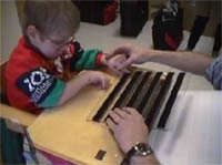 Suunnan harjoittelua LEA-valolaatikon taktiilien viivojen avulla.
