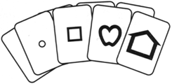 Si l'enfant éprouve des difficultés à percevoir les images, jouez d'abord avec lui au Puzzle 3D de Léa (#251600), puis comparez les symboles en 3 D avec les images obtenues en faisant un dessin autour des pièces du puzzle, ou avec les Cartes Flash (#251900). N'utilisez le jeu de cartes qu'après, comme jeu de classement.