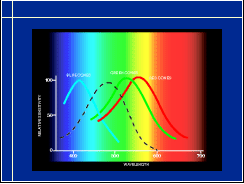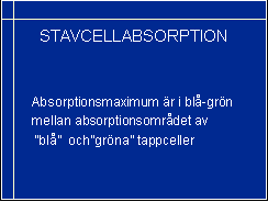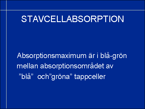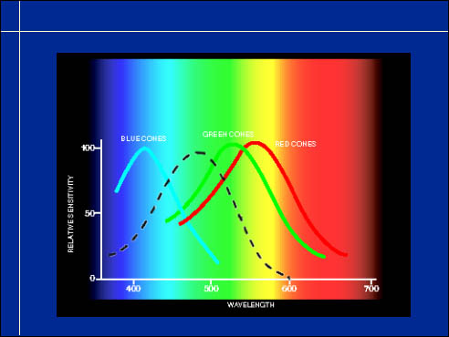 Man kan minska bländning med filterglasögon. För att förstå deras inverkan på seendet måste man veta om stavcellers absorptionskurva. Den ligger mellan kurvorna av de blåkänsliga och de grönkänsliga tappcellerna.