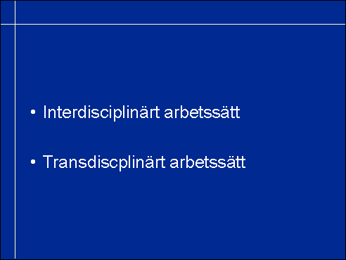 Tidigare har vi använt benämningen 'interdisciplinärt arbetssätt 'på samarbetet mellan olika yrkeskategorier i synbedömningen. Nu skall det utveckla sig till 'transdisciplinärt arbetssätt' vilket betyder att vi inte bara arbetar tillsammans utan vi vågar och får låna arbetsredskap från varandra, arbeta inom varandras arbetsfält. I praktiken betyder detta att lärare och terapeuter använder syntesten som en del av sitt vanliga arbete. Då måste man naturligtvis lära sig hur man mäter men det går lätt. Genom att man får mätningsresultat från flera olika testsituationer lär vi mycket mera än ända hittils om utveckling av näthinneskador och om funktionella ändringar i synen hos barn med RP.