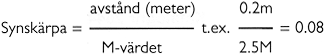 Det är lättast att skriva ner synkärpevärden som M-värden och avstånd som barnet använde för att titta på bilden. Avståndet mäter man bäst med sin hand som avstånd mellan två fingrar och kontrollerar senare hur många
