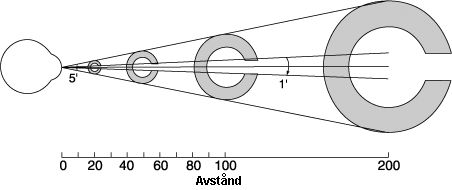 SYNSKÄRPETESTSynskärpetest används mer än något annat test i oftalmiatrik och i synscreening på BVC, skolor och arbetslivet. Därför är det viktigt att testen har rätt struktur och att de används rätt. Speciellt vid screening används nu testsituationer som leder till onödiga efterundersökningar och detta gör screeningen dyrare än den behöver vara. Även på ögon- och neurologiska polikliniker används test som inte mäter det man borde mäta. Synskärpan kan mätas med många test med olika strukturer. De skildrar synfunktionen på olika sätt. Grundtestet är radtest, testet med minst fem optotyper på raden och med utrymme mellan optotyper som är lika stor som optotypens bredd och utrymme mellan rader som är lika med den nedre radens höjd. (Visual Acuity Measurement Standard (1984) Consilium Ophthalmologicum Universale, Visual Functions Committee). Även om den internationella rekommendationen har varit publicerat över tio år och känt allt sedan 70-talets början, följs den inte i designing av synskärpetest i alla länder. Namnet radtest används också fel. T.ex. Oculus närtest heter Reihentest men mellanrummet mellan symbolerna varierar från ca 80% av optotypernas bredd på minsta radrena till 5-6% mellan de största optyperna. Detta leder till att crowning effekten varierar från rad till rad. LEA test seriens synskärpetest är radtest, mera tätt grupperade test eller test med enstaka symboler så att man kan mäta synsystemets funktion i dessa tre situationer med varierande krav på fixation och att kunna urskilja. Vid testning finns det flera variabler som är svåra att kontrollera även om testen vore standardiserade. Belysningen är en av de svåraste variablerna att kontrollera. När man använder syntavlor som belyses av en eller flera lampor är det mycket svårt att ha exakt samma belysning vid alla testsituationer . Det var därför som Natioanl Eye Institute i USA i mitten av 70-talet valde till den stora diabetes retinopatiprojekten den transparenta EDTRS-syntavlan som belyses i en stor ljuslåda och därigenom har alltid samma ljusnivå. Den stora EDTRS-ljuslådan är för dyr och stor för hälsocentraler och många ögonmottagningar så mindre ljuslådor tillverkas nu för dessa testsituationer. Även om testen och belysningen är väl standardiserade och testen utförs på rätt avstånd eller räknas rätt om att motsvara det avstånd som användes, finns det ännu variation i synskärpevärden. Varje testare har sitt personliga sätt att förbereda barnet/personen och ett särskilt sätt att presentera optotyperna, vänta på svaret och ge respons. Detta leder till att synskärpevärden mätta bara några dagar eller timmar efter varandra i samma testlokal av två personer kan skilja sig en hel rad, mera sällan två rader. Det vore idealt om åtminstone förskole- och skolbarn testades alltid av en och samma person och med samma test. När man byter från barnsymbolerna till siffror eller bokstäver borde man mäta båda värden vid bytet för att veta om synskärpevärdena har ändrats eller inte. För att testresultaterna vore jämförbara borde alla testare noga följa testinstruktioner. Sådana 'småsaker' som avståndet av täckkortet från raden som skall läsas och användning av pekning på en optotyp när ett barn eller en vuxen person verkar ha svårt att veta vilken optotyp som bör läsas, kan ändra synskärpevärdet flera rader. Testförfarandet är beskrivet mycket detaljerat i den här manualen i hopp om att testsituationerna kommer att vara väl standardiserade.